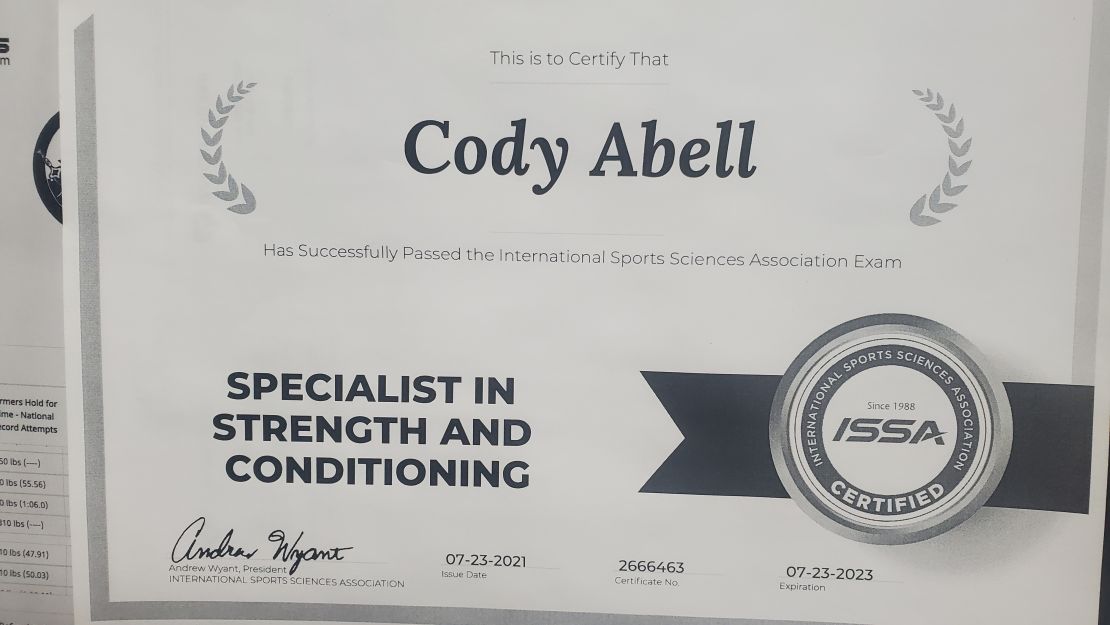 The strength and conditioning specialist certification requires CPR certification. I specialize in strongman and have a background in powerlifting.